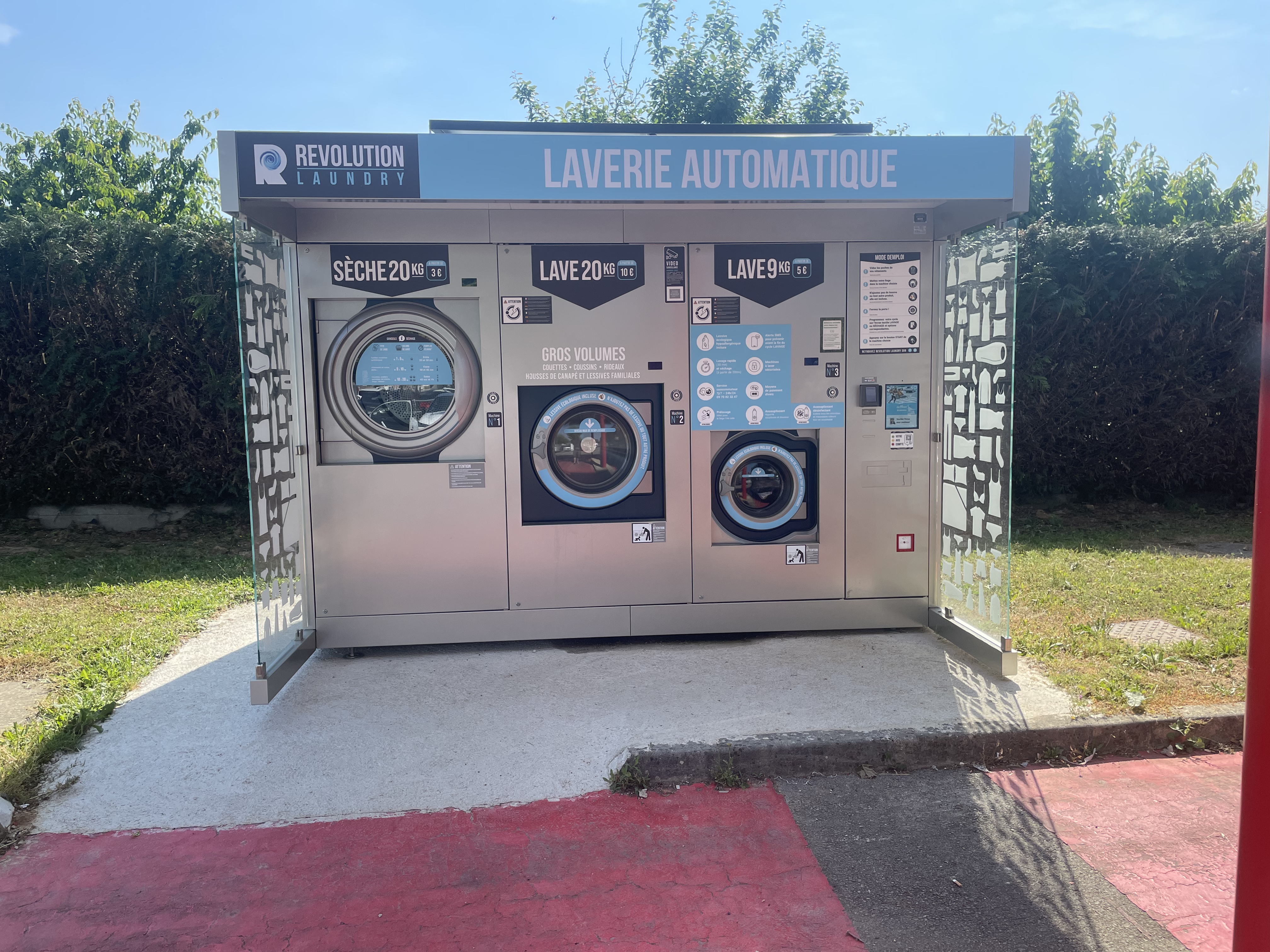 Laverie automatique très pratique , elle lave votre linge pendant que vous faites vos courses , vous avez a côté distributeur de bouteilles de gaz 24 x24 a l’entrée du parking vous avez 5 places pour camping car de 9 m maximum